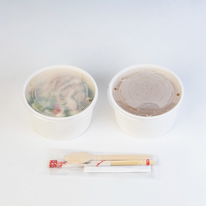 Sản phẩm thường đi kèm nắp nhựa PP (chịu nhiệt) hoặc nắp PET (trong suốt). Nắp được thiết kế rãnh khớp hoàn toàn với miệng gờ của tô giấy, đảm bảo kín khít 100%, không lo sánh đổ khi di chuyển đường dài.